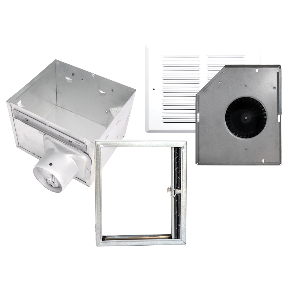 Three part system that includes a Housing, Trim Kit (Motor/Blade/Grill) and Damper.