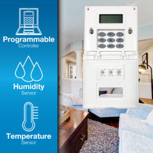 Dial in the desired airflow from 30 to 130 CFM, Set limits for humidity and temperature (or use the factory default settings), Turn it On